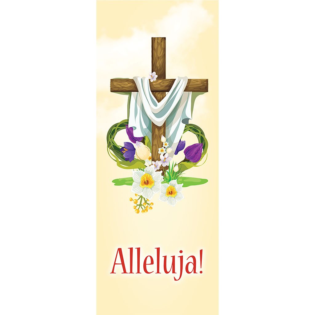 Opis produktu Baner Alleluja - Krzyż z Szarfą - 74x200cm