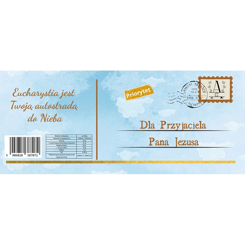To coś zupełnie innego niż klasyczne słodycze - wyjątkowe połączenie pysznej mlecznej czekolady z inspirującym duchowym przesłaniem, ukrytym w środku w formie listu od św. Carlo Acutisa. Idealna jako wartościowy upominek dla dzieci z okazji Pierwszej Komunii Świętej.
