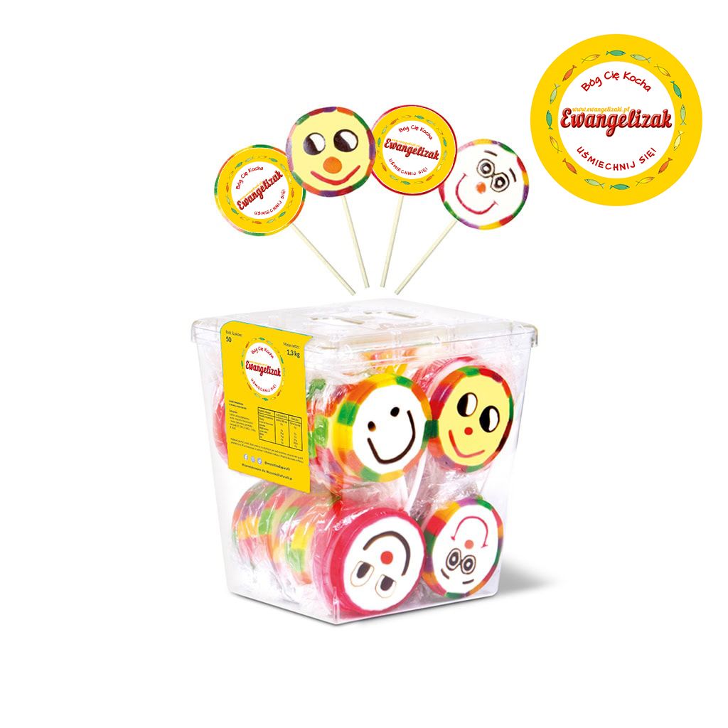 Ewangelizaki mają średnicę około 53mm, co sprawia, że są idealnym rozmiarem dla dzieci. Każde opakowanie zawiera 50 sztuk tych wyjątkowych lizaków, co czyni je doskonałym wyborem na różne okazje, takie jak nagrody dla uczniów katechezy, upominki na zakończenie roku szkolnego, czy po prostu słodkie podziękowania. Lizaki są dostępne z dwoma wersjami naklejek, co pozwala na jej dobranie w zależności od potrzeb.