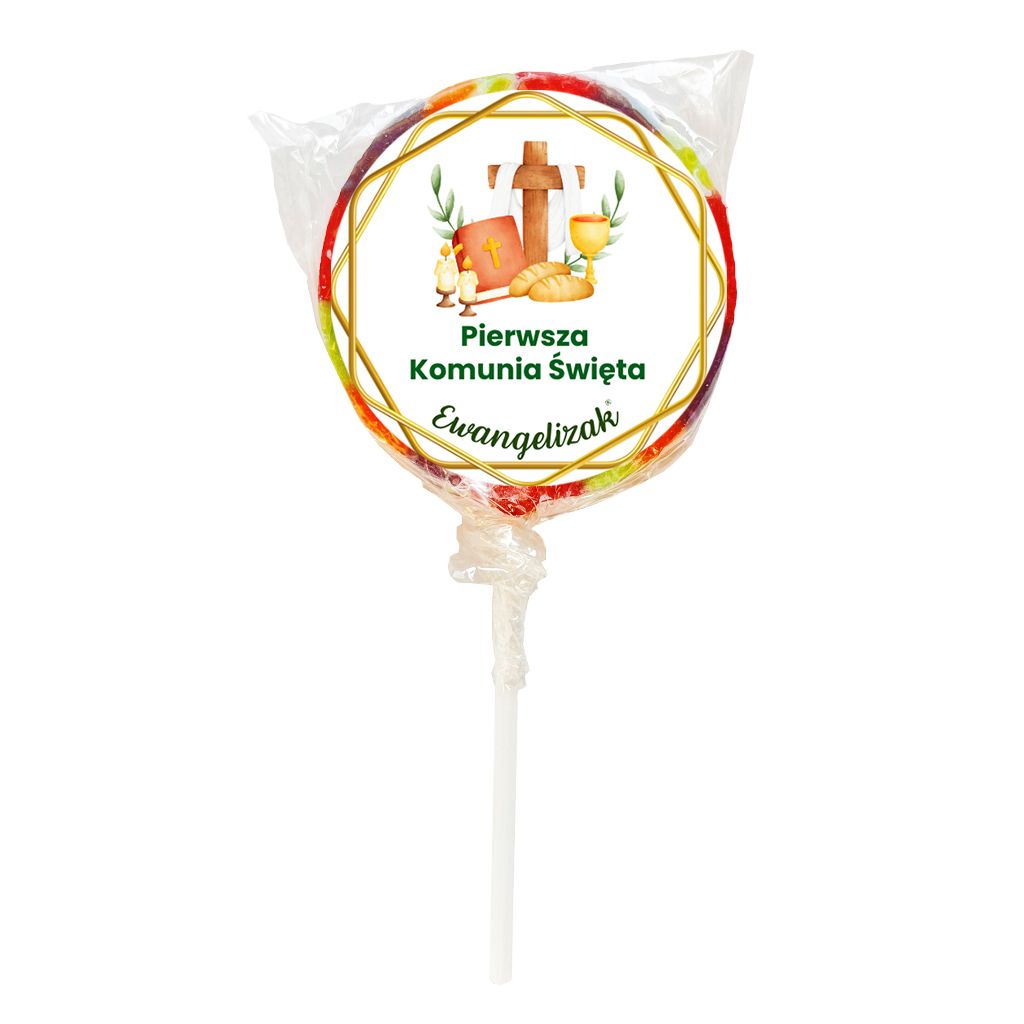 Ta mniejsza wersja Ewangelizaka to lizak o średnicy około 30mm. Unikalność i wysoką jakość zapewnia ręczne wykonanie każdego lizaka. Lizaki są dostępne w opakowaniach po 125 sztuk, co czyni je idealnym wyborem na większe wydarzenia i uroczystości parafialne. W przeliczeniu, cena 1 lizaka to jedynie 1,5 zł.