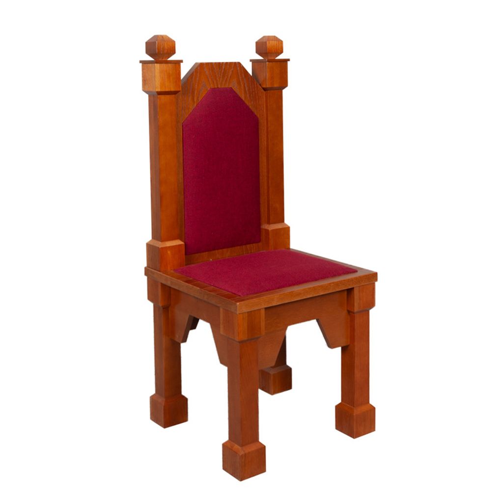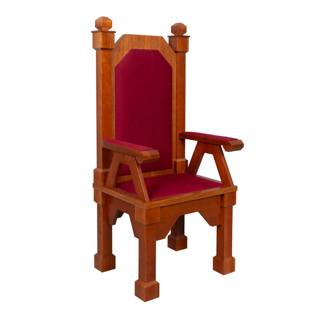Wymiary fotela głównego to wysokość 140 cm oraz szerokość 64 cm, natomiast fotele boczne mają wysokość 120 cm i szerokość 50 cm. Tak dobrane proporcje zapewniają wygodę oraz estetyczny wygląd w przestrzeni ołtarzowej. W razie pytań związanych z indywidualną modyfikacją foteli, prosimy o kontakt telefoniczny w celu ustalenia zakresu zmian oraz wyceny.